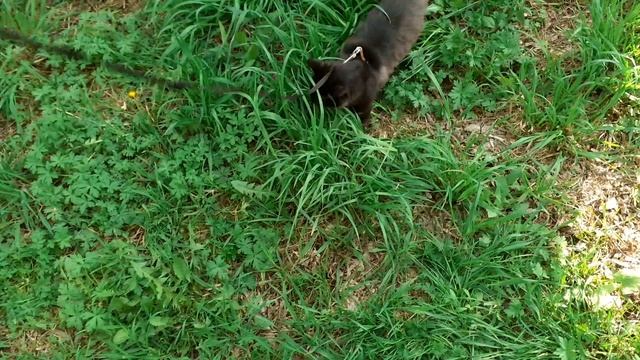 Котёнок Мишка гуляет но побаивается и бегом домой.
