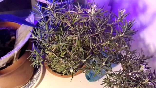 Розмарин на окне зимой.