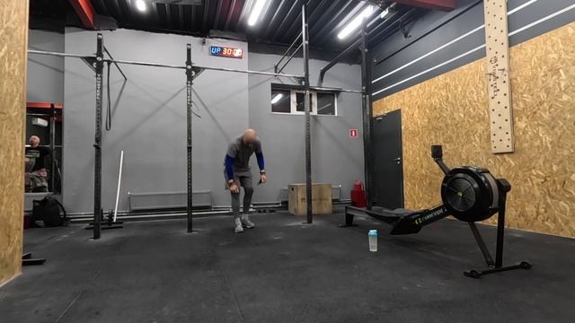 Комплекс На время, в парах: 200/175/150 калорий* *в начале каждых 3х минут: 3 синхронных трастеров 6 синхронных берпи через штангу боком 3 синхронных трастера Крышка: 20 минут * 08:37 (время) Делал один 100 кал Комплекс 20AMRAP, в парах** 5 подтягиваний 10 отжиманий 15 приседаний *Каждые 4 минуты 200 м гребля оба **смена по раундам * 420 (повторения) 14 раундов, делал один и никуда не торопился