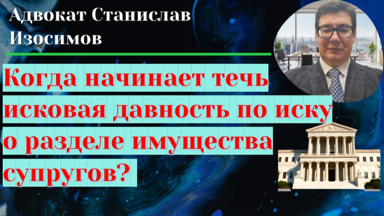 С какого момента начинает течь срок исковой давности по иску о разделе общего имущества супругов? Видео из большой серии о применении сроков исковой давности в спорах различных категорий. Публикация по теме: https://advokatizosimov.ru/newsblog/article_post/srok-iskovoy-davnosti-po-isku-o-razdele-imushchestva-byvshikh-suprugov