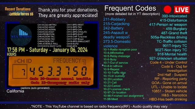 Companion stream for watching local streamers and PulsePoint Daily reset with rewind Frequency List - https://tinyurl.com/KCBfreq Police codes PDF - https://tinyurl.com/KCBcodes Scanner model - Bearcat 350C https://tinyurl.com/UNIDENBC355N Antenna - HG Scanner https://tinyurl.com/KCBbaseantenna Budget Scanner - Baofeng UV5R https://tinyurl.com/KCBbudgetham Budget Antenna - https://tinyurl.com/ABBREE771