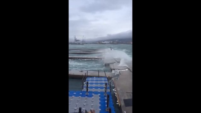 Пластиковые понтоны 50х50 на Черном море в 5-ти бальный шторм в Новороссийске