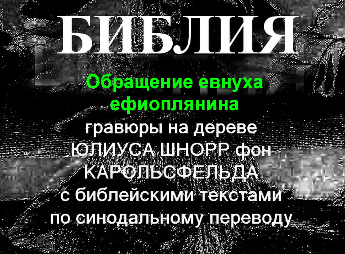 Библия, в иллюстрациях, Обращение, евнуха, ефиоплянина, Юлиус Шнорр, Карольсфельд, Гравюры, на дереве, религия, по синодальному, переводу, про библию, религиозный, вера,
