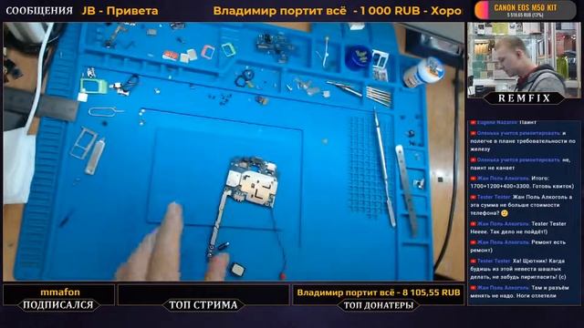 Донат с озвучкой в эфире – https://www.donationalerts.com/r/vladimir_mishin #RemFix на работе Я занимаюсь ремонтом и обслуживанием телефонов, планшетов, ноутбуков и мелкой бытовой техники. Нахожусь по адресу: г. #Химки, ул. Маяковского 20, Магазин "Мелодия". Буду рад если подпишитесь! YouTube - https://www.youtube.com/c/ВладимирМишин Twitch - https://www.twitch.tv/remfix_ Я в VK - https://vk.com/lamir48 Группа VK - https://vk.com/lya_mir Инстаграмм – https://www.instagram.com/remfix.khimki/ WhatsApp: +7 977 106 77 73 Так же рекомендую заглянуть на каналы моих друзей: Новичек Поможет - https://www.youtube.com/channel/UCQI5JWgwCercZXeuYaDWaDw Matrix 57 - https://www.youtube.com/channel/UCJ-qOH0NGMMxgbSDDxHGHNA Тыжпрограммист - https://www.youtube.com/channel/UCEO1Vc4wDbQIRWCmDmB2zIQ Михаил Плюско - https://www.youtube.com/user/Pluskor Характеристики ПК: Intel Core i7 7700 - http://ali.pub/513vw6 16 Gb DDR4 2400 - http://ali.pub/513vw6 GeForce GT 730 - http://ali.pub/513xi4 SSD 240Gb - http://ali.pub/513xi4 HDD 1TB - http://ali.pub/513yhb Cooler Master i70C - http://ali.pub/513z2i Веб-камера Logitech HD Pro C920e - http://ali.pub/4iurkz Кронштейн для съёмки - http://ali.pub/3x5j74 Коврик для пайки - http://ali.pub/3x5k8g Набор отвёрток - http://got.by/3x6eoc Пинцет - http://ali.pub/3v0hha #РемонтТелефонов #RemFix Powered by Restream https://restream.io/