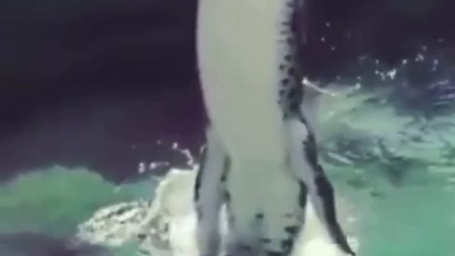 Крокодuлы способны полностью выпрыгивать из воды во весь свой рост.