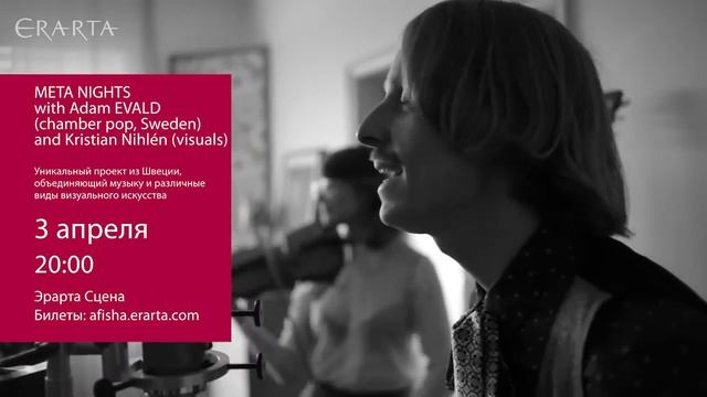 3 апреля 2016 г. в рамках проекта Meta Nights на Эрарта Сцене выступит шведский музыкант и основоположник жанра chamber pop Адам Эвальд. Подробности и билеты онлайн http://www.erarta.com/ru/calendar/events/detail/6f8bbd28-ec17-11e5-8e29-8920284aa333/