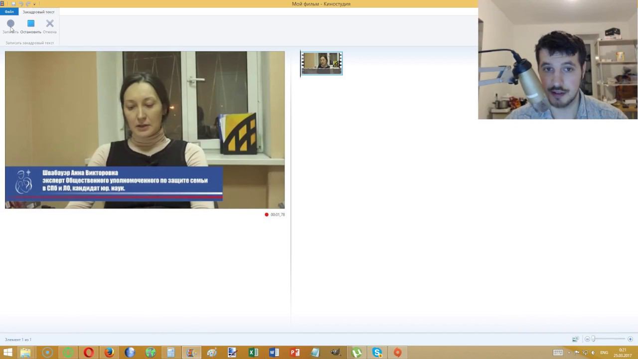 Как записать звуковую дорожку к видео в Виндовс Киностудии