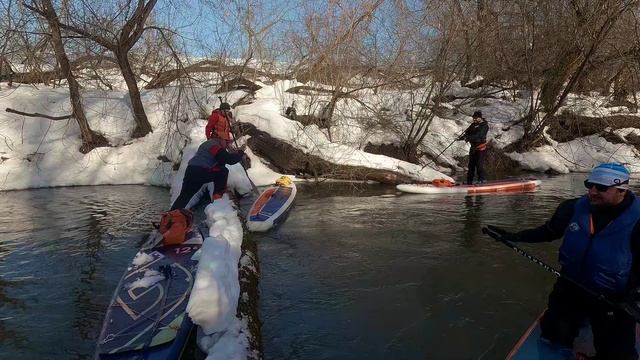 Получился полнометражный фильм о нашей первой весенней массовой прогулке. Прогулялись сражу по Северке и Москва-реке. Традиционно для Северки были шикарные пейзажи на берегах, бодрое течение, еще прозрачная река, интересные и коварные завальчики, а бонусом белый снег глубиной полметра, слепящее солнце, голубое небо и ледовое поле на завершающих 300 метрах от устья. На Москве-реке протор, красотища, очень быстрое течение, которое не чувствуется и мартовские моторные лодки. А Коломна с воды выглядит просто волшебно. Прогулка прошла насыщено, чуть ли не половина участников открыла купальный сезон (большинство падений попало в кадр), сломали 2 весла, прокатились 18 км и налюбовались оживающей весенней природой