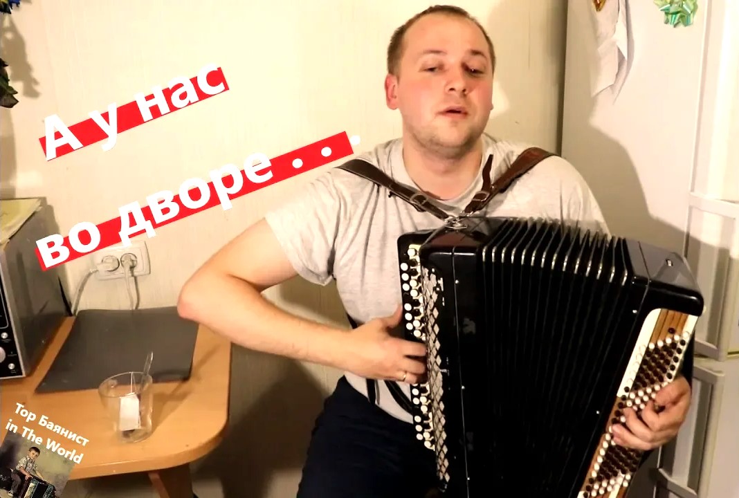 Песня Аркадия Островского на слова Льва Ошанина - "А у нас во дворе" . Первый исполнитель - Иосиф Кобзон . Проект "Top Баянист in The World" показывает как Не нужно играть на Баяне . . . Пожертвовать на развитие канала http://www.donationalerts.ru/r/top_bayanist Инстаграм - https://www.instagram.com/top_bayanist/ Твиттер - https://twitter.com/top_bayanist Фэйсбук - https://www.facebook.com/smakarovv Группа Вконтакте - https://vk.com/top_bayanist Я Вконтакте - https://vk.com/smakarovvv ЖЖ - https://murmanskiyy.livejournal.com Второй канал - https://www.youtube.com/channel/UCw0vqw43BBRQSuqXOD8yfhg Поддержи проект и следующий ролик выйдет быстрее ! ! ! P.S. - все средства пойдут исключительно на развитие проекта ( камера , свет , фон , звук ) Донат - http://www.donationalerts.ru/r/top_bayanist Яндекс деньги - 410012570648291 #баян #баянист #топбаянист