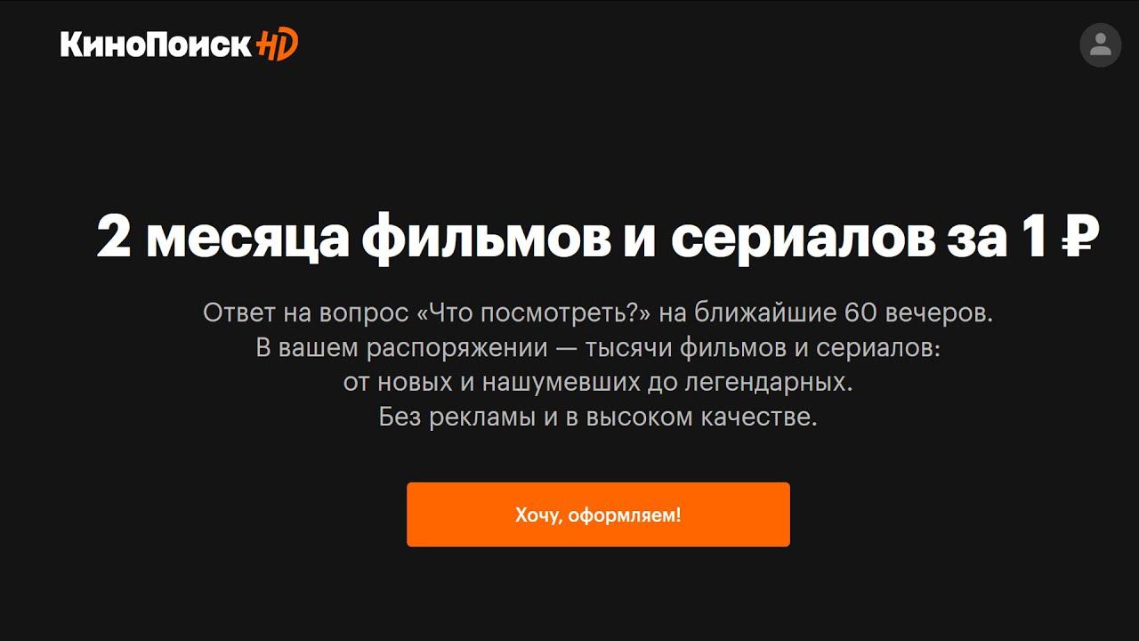 2 месяца фильмов и сериалов на КиноПоиск HD за 1 рубль