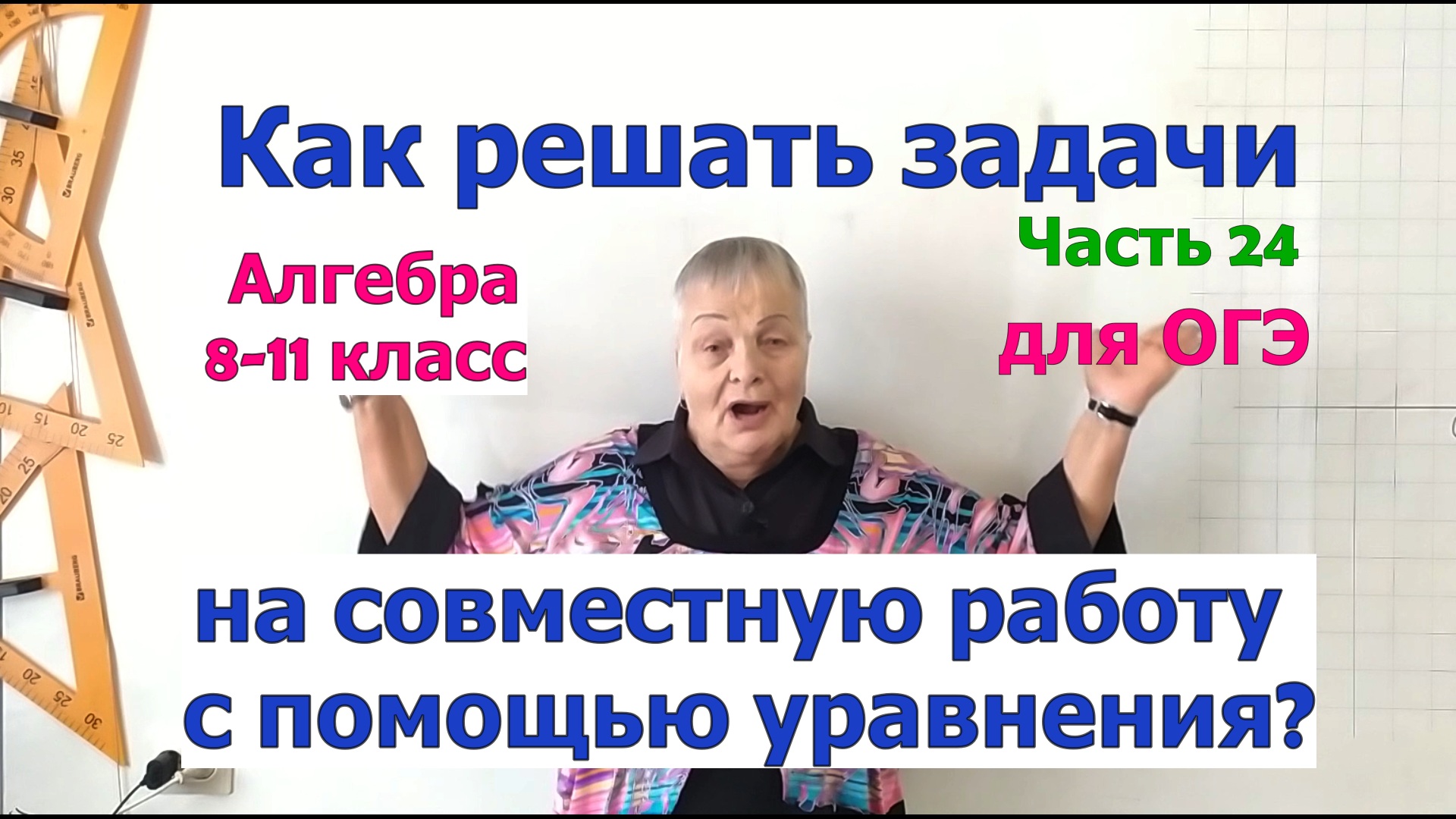 Алгебра 8-11 классы. Как решать задачи на конкретную и неконкретную совместную работы с помощью уравнения? Сегодня на примере ещё двух задач, предлагаемых, в том числе и для ОГЭ, мы покажем Вам, как составлять уравнения в задачах на совместную работу. А поможет нам в этом так называемый Любовью Николаевной черновик решения. Если Вы не видели предыдущие уроки по теме «Как решать задачи по теме «Работа»», то обязательно посмотрите их, тогда этот урок будет Вам очень понятен. 00:00 Начало видео. 00:22 Задача 1. Первый вариант решения. 08:14 Задача 1. Второй вариант решения. 12:27 Задача 2. 17:16 Подводим итоги. Если Вы впервые на нашем канале, и у Вас остались вопросы или Вы хотите освежить в памяти как решать задачи, то рекомендуем Вам посмотреть следующие видео: Что такое работа, производительность труда и время в задачах на работу. Как решать задачи по математике в 5-11 классах. Часть 21. https://rutube.ru/video/c3572455511cd64445d06235e62d3c58/ Как работать с формулами работы, производительности труда и времени. Как решать задачи по математике в 5-11 классах. Часть 22. https://rutube.ru/video/f4acd02db1210da8f1e787427a4fa8ae/ Как решать задачи на совместную работу с помощью уравнения. Как решать задачи по алгебре в 8-11 классах. Часть 23. https://rutube.ru/video/5595057eb623cd41f07d04da6d3b6975/ Меры длины, массы, площади и объёма. Как с ними работать. Математика 4-5 класс. https://rutube.ru/video/388aa1379c540cc58174b9c176d1293a/ Как решать задачи по математике в 5-7 классах. Часть 1. Задачи на сложение. https://rutube.ru/video/256ffd1be659f58c47299bd73ef1ac70/ Как решать задачи по алгебре в 7 классе. Часть 2. Задача о треугольнике на сложение и составление уравнения. https://rutube.ru/video/6d4cb9ef20bfd5fe47d942629d3908de/ Как решать задачи по математике в 5 классе. Часть 3. Задачи на вычитание. https://rutube.ru/video/e7e9912ae76d8d6530e60748e23245bd/ Как решать задачи по математике в 5 классе. Часть 4. Задачи на вычитание. Задачи на составление выражения. https://rutube.ru/video/627e7d84353399118eaf90bebb594361/ Как решать задачи по математике в 5-7 классах. Часть 5. Слова-подсказки на сложение и вычитание. https://rutube.ru/video/32ac0ecf97ab42f52e52275b418ebdaa/ Как решать задачи по алгебре в 7 классе. Часть 6. Как научиться составлять уравнения. 3 варианта решения одной задачи. https://rutube.ru/video/59d81358cae22634a91373ee31b9b8f0/ Как решать задачи по алгебре в 7 классе. Часть 7. Задачи на составление уравнения с помощью неравенства. https://rutube.ru/video/2289da7ca73d23aa08c4a9991a97e587/ Как решать задачи по математике в 5-7 классах. Часть 8. Задачи на умножение. Слова-подсказки. https://rutube.ru/video/26e034ca25c567e6795607bf23c9034d/ Как решать задачи по математике в 5-7 классах. Часть 9. Задачи на умножение. Как найти часть (дробь) от величины (числа). Как решать задачи по математике в 5-7 классах. Часть 10. Задачи на деление. Слова-подсказки. https://rutube.ru/video/90a656c7edba1d9939c69d4494d71e0c/ Как решать задачи по математике в 5-7 классах. Часть 11. Задачи на умножение. Как найти величину (число) по её части (дроби). https://rutube.ru/video/f8a3b29ac56ae5bab55c411f0741252a/ Как решать задачи по математике в 6 классе. Часть 12. Решение задач на части (дроби) с помощью уравнения и без уравнения. https://rutube.ru/video/b765d99ad909cd70ffbcc8e59c02a8de/ Как решать задачи по алгебре в 7 классе. Часть 13. Решение задач на части (дроби) с помощью уравнения. https://rutube.ru/video/312e529f9168fe05c759145499dfbe04/ Задачи на движение по земле навстречу друг другу. Как найти путь. Как решать задачи по математике в 5-7 классах. Часть 14. https://rutube.ru/video/0b4ffdaa155e465ccd01b803ac31067a/ Задачи на движение по земле навстречу друг другу. Как найти скорость и время. Как решать задачи по математике в 5-7 классах. Часть 15. https://rutube.ru/video/3