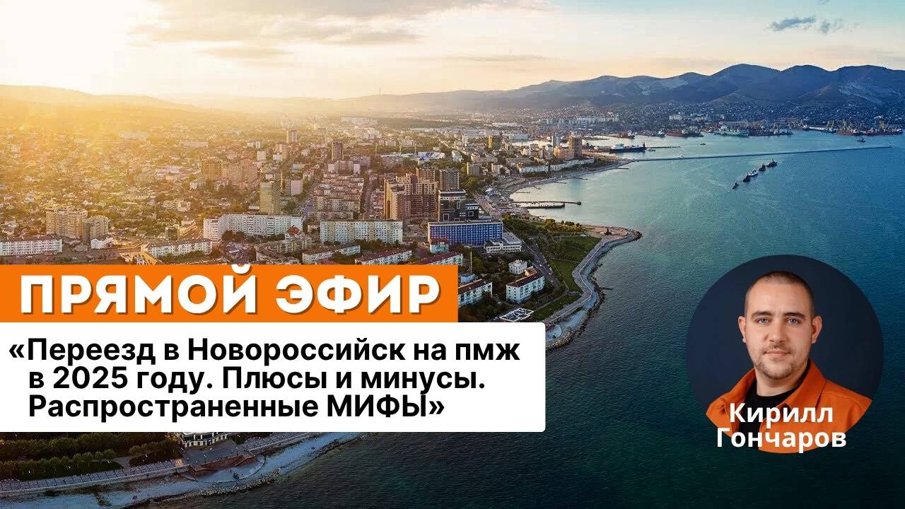 Прямой эфир на тему «Переезд в Новороссийск на пмж в 2025 году. Плюсы и минусы. Распространенные мифы» 🔥 🌟Спикер: Кирилл Гончаров 🔺Дата эфира: 4 августа в 18:00 (Мск) ➡Эфир пройдет на Youtube и в ВК 🔺Программа эфира: 1. Распространенные мифы о Новороссийске 2. Плюсы и минусы жизни в Новороссийске 3. Кому подойдет жить в Новороссийске? 4. Почему предпочитают переезжать в Новороссийск? 🔸Контакты для связи: Кирилл: 8-928-231-50-56 Друзья, всех жду в эфире. 🥳 Задавайте свои вопросы и не пропустите интересную информацию о переезде в Новороссийск 🌊