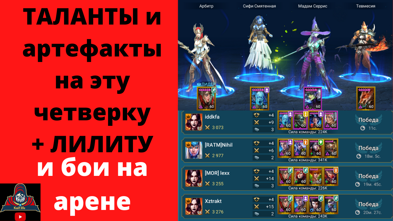Избиваем арену = ТАЛАНТЫ и артефакты сразу на Сифи, Арбитра, Мадам Серрис, Герцогиню Лилиту и Тевмесию рейд RAID Shadow Legends ВК https://vk.com/klife2020 Facebook https://www.facebook.com/kaif.lifer/ Яндекс Дзен https://zen.yandex.ru/kaiflife Instagram https://www.instagram.com/raid_shadow_legends_kaif_life/ Twitter https://twitter.com/KaifLifeRaid1 Telegram Kaif Life RAID Не можете пройти подземелье, этаж в роковой башне, хотите закрыть войны фракций и получить Лидию, достала АРЕНА, чувствуете, что герои одеты не правильно или запутались - кого качать, кого на корм, кого на склад ! Горит пукан и сдают нервы от неудачных попыток собрать АНКИЛ, хотите своим героям МАКСИМАЛЬНО ЭФФЕКТИВНЫЕ и ПРАВИЛЬНЫЕ ТАЛАНТЫ - сразу пишите в личку на facebook или в VK - команда профессионалов, состоящая из квалифицированного автора канала и его говорящего кота Амура все сделают максимально быстро, красиво и эффективно ! Поддержать и поблагодарить автора канала : VISA Сбербанк 4276 5201 6708 2458 Донат https://www.donationalerts.com/r/kaif_life
