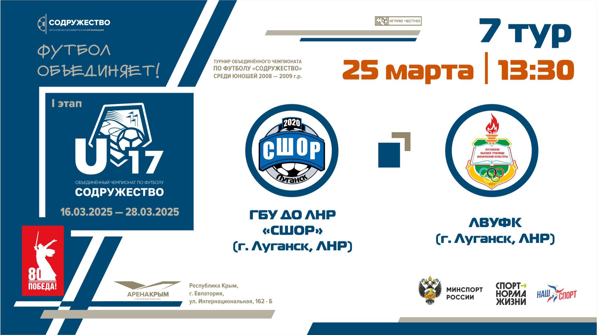 7 ТУР | U-17 | ГБУ ДО ЛНР «СШОР по футболу» (г. Луганск) - ЛВУФК (г. Луганск, ЛНР)