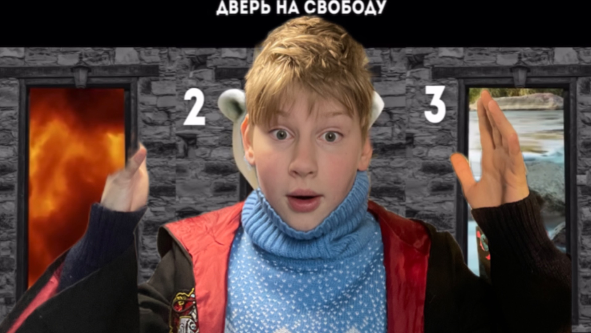 Нубику задают вопросы, и он выбирает правильный. Пример: какую дверь ты выберешь, чтобы выжить?