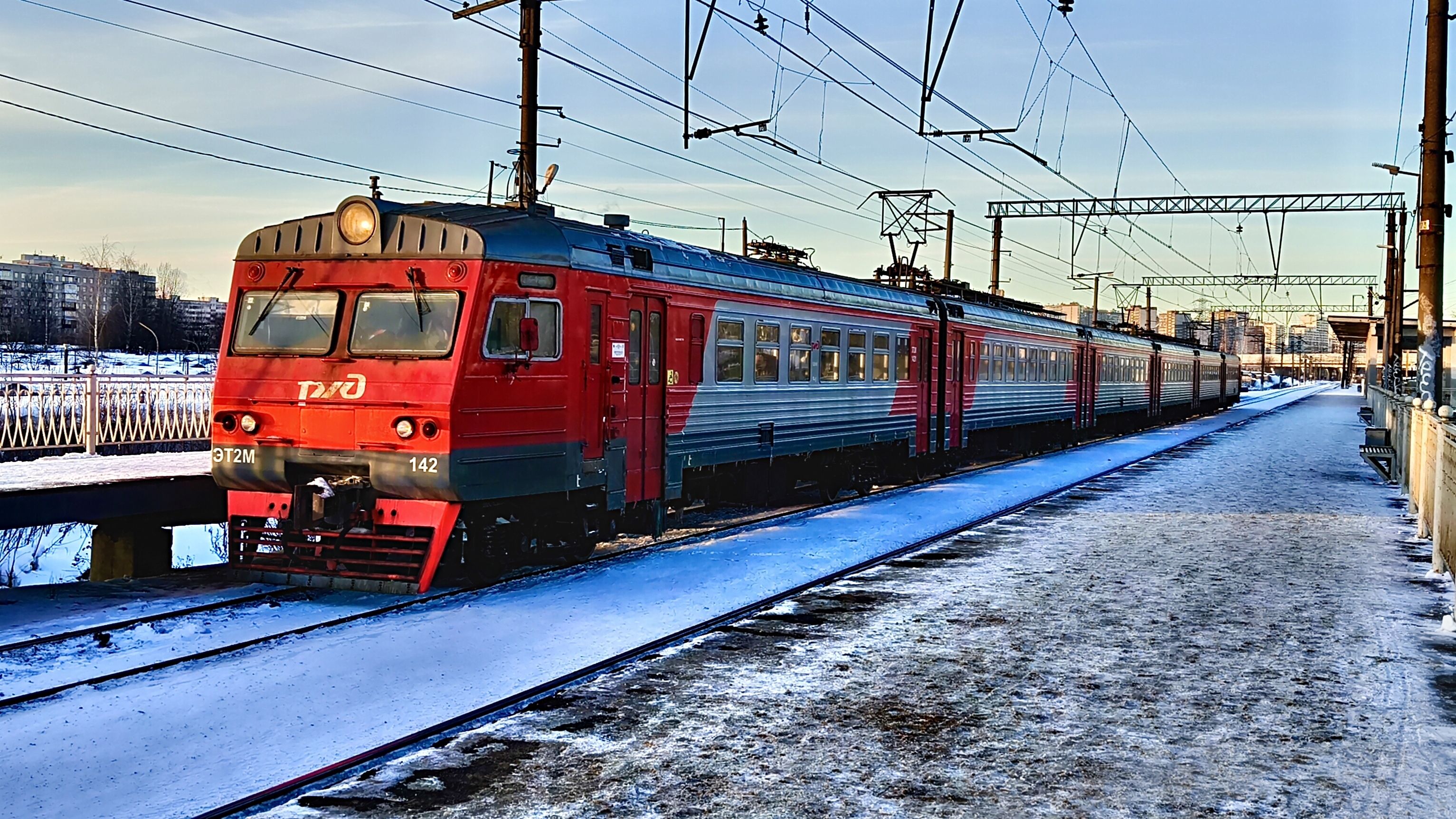ЭТ2М 142 прибытие и отправление. Платформа Новая Охта