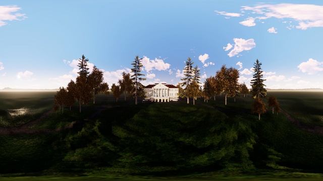 3D реконструкция усадьбы Ольгово, вид на главный дом со стороны парка (кон. XIX - нач. XX вв.)