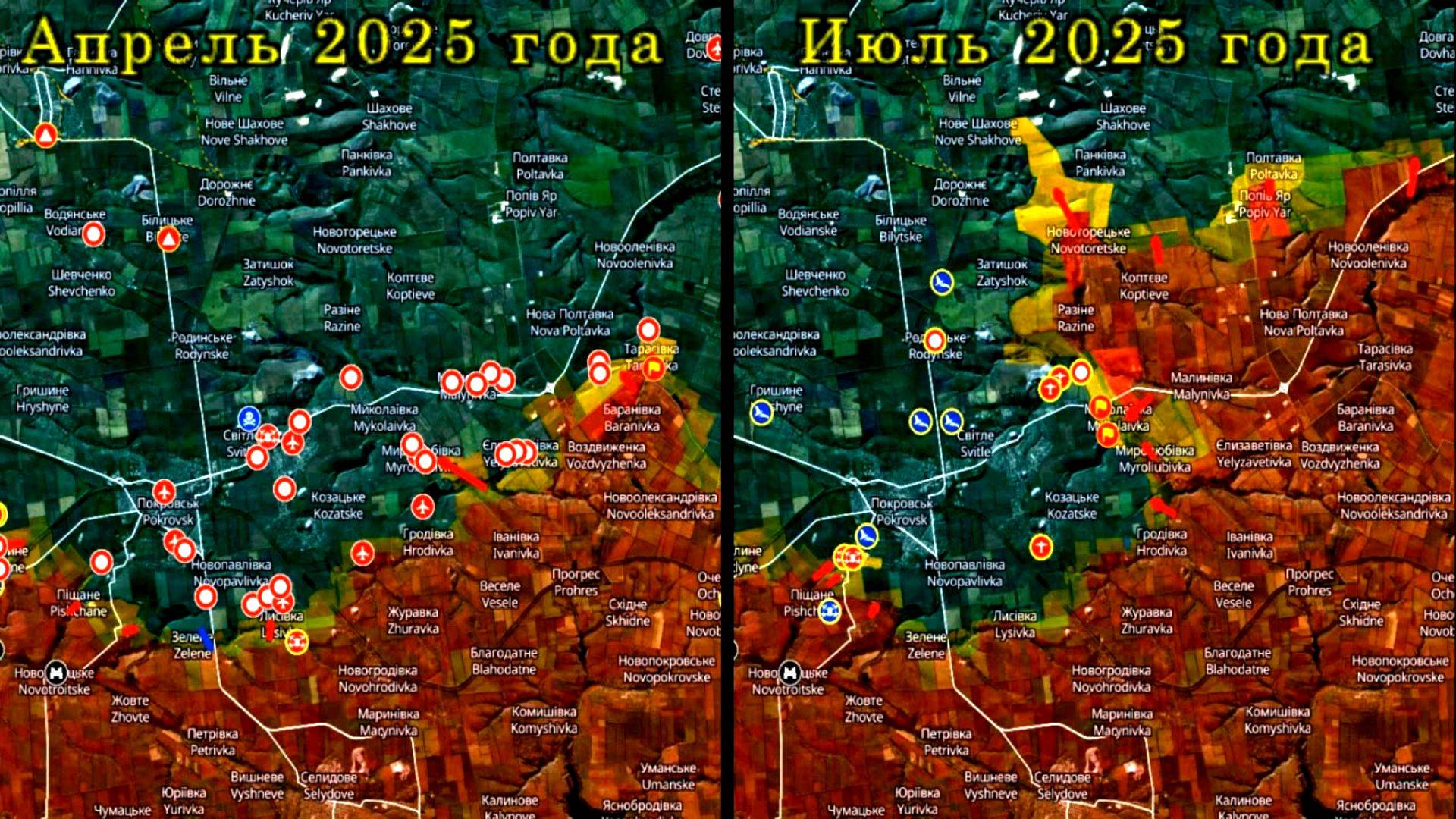 Карта боевых действий за Покровск с апрель по июль 2025 года