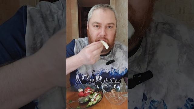 Худею. День 13. Куриная ножка и салат огурцы помидоры с луком. Мукбанг. Первые занятия дома. #еда #мукбанг #худею #занятия