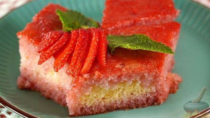 Нежный, пропитанный сиропом бисквит на манной крупе, украшенный свежими ягодами клубники, своей воздушной текстурой и ярким ягодным ароматом сулит незабываемое удовольствие. #Манник #БисквитНаМанке #СладкаяВыпечка