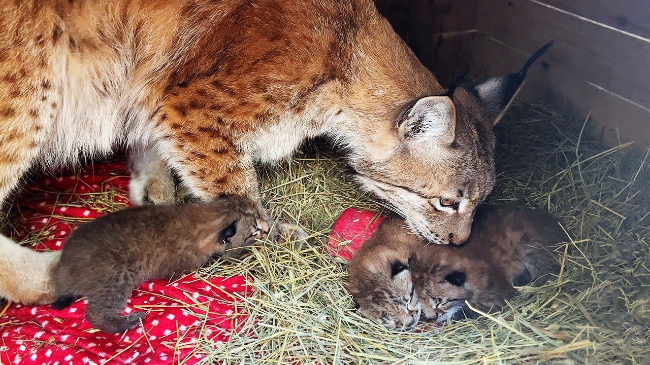 РЫСЬ Ханна ЗНАКОМИТСЯ с КОТЯТАМИ Умки и хочет забрать рысят себе