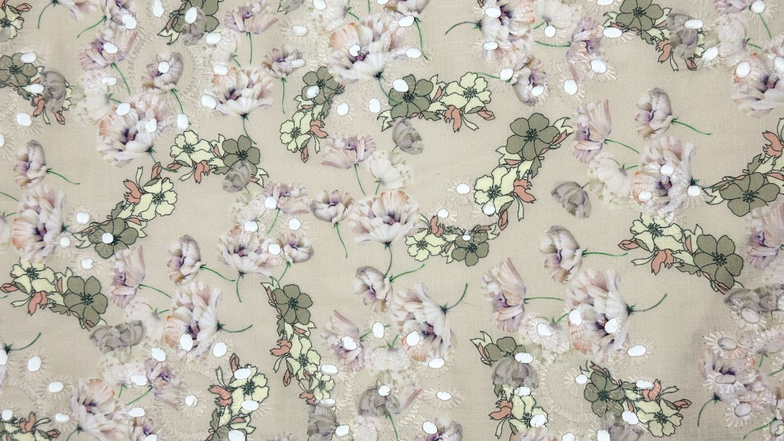 Шитье цветы на бежевом https://ducktex.ru/catalog/tkani/
