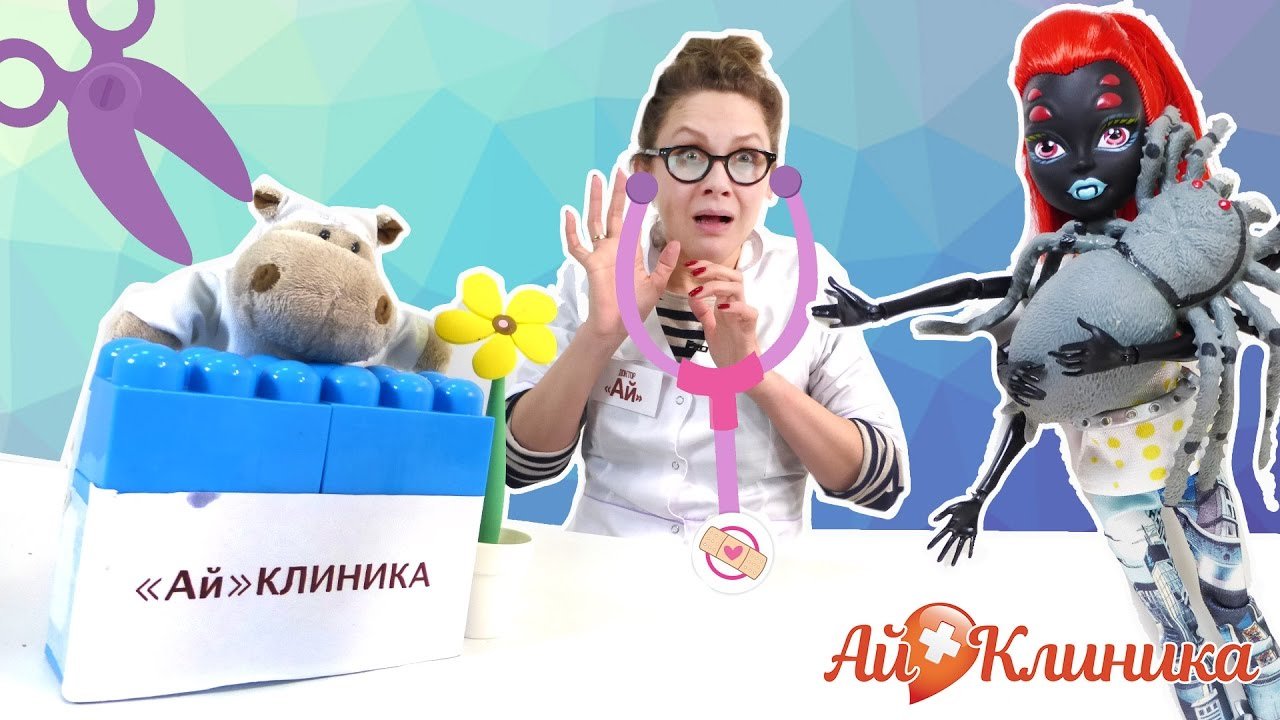 В клинику к ДОКТОРУ АЙ сегодня пришла ВАЙДОНА из Школы Монстров (Monster High). Она привела своего любимчика - паучка Франсуа. Бедняга повредил себя, пока охотился за мухами. Придется лечить! Только вот Доктор Ай жутко боится пауков… Смотри наше новое классное видео для детей и играй в доктора вместе с нами! Не забудь подписаться на самую лучшую клинику для игрушек - Ай-Клиника! https://www.youtube.com/channel/UCGniralnly1KvmlBMjGEVLA/?sub_confirmation=1 Не забудь подписаться на канал СТРАНА ДЕВЧОНОК, чтобы следить за новыми приключениями! https://www.youtube.com/channel/UCCe6oRAVWZFztZJMAujRu7A/?sub_confirmation=1 На этом канале живут наши лучшие подружки - Бантики Косички! https://www.youtube.com/channel/UCZJi3695pl6tfkAHp4BLMDA/?sub_confirmation=1 Смотри ещё больше весёлых видео на канале Как Лев Рычит? https://www.youtube.com/channel/UCbo90O9ypUVO7FnfXEjGqEg/?sub_confirmation=1 Заходи к нам на сайт: http://www.4screens.ru/ Ищи нас в социальных сетях! ВКонтакте: https://vk.com/club132423271 Фейсбук: https://www.facebook.com/4ScreensShow Твиттер: https://twitter.com/4Screens_Studio Инстаграм: https://www.instagram.com/4screensstudio/
