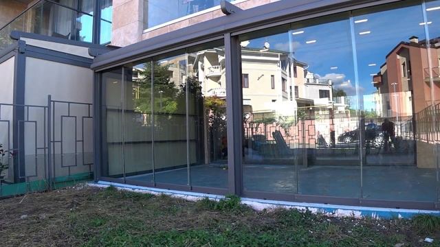 Раздвижное панорамное остекление для веранд, кафе, ресторанов с слайдерным (сдвижным) открыванием створок - это уникальная система безрамного раздвижного остекления для любого вида проемов. Конструкция имеет легкий внешний вид и проста в использовании, створки плавно перемещаются по рельсам при помощи роликов - даже при больших габаритах конструкции, ход створки будет плавным и бесшумным. Благодаря своей конструктивной особенности и способу открывания, раздвижное панорамное остекление открывается почти на всю часть проема, тем самым не скрадывая площадь.