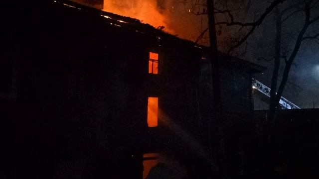 Ночной пожар в деревянной двухэтажке. Один пострадавший.