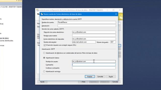Configuración de correo electrónico de base de datos (SQL SERVER 2012)