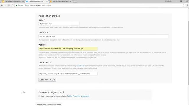 In this video, we'll see how we can create a Twitter App on Twitter's Developer Console and then link it with our Firebase Console to enable Twitter Sign in. This is just one of the videos from my complete User Authentication Masterclass Course on Udemy. In this course, we have a look at in-depth coding exercises to help you implement User Authentication using various Social Login Options like Facebook, Twitter, GitHub, and Google in minutes. Get my "User Authentication Masterclass with Angular" Udemy Course at a discounted rate of $10.99 for a limited time. Use this link to enroll: https://www.udemy.com/firebase-masterclass-with-angular/?couponCode=YOUTUBE_DISCOUNT