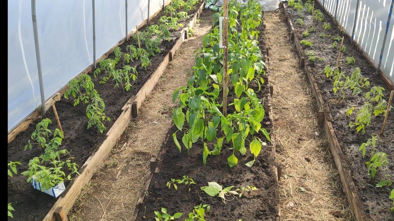 Пересадка томатов и перцев в теплицу.