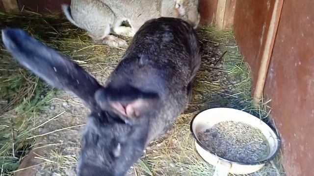 Кролики фландр. Самка гостит у самца. Бельгийские великаны.