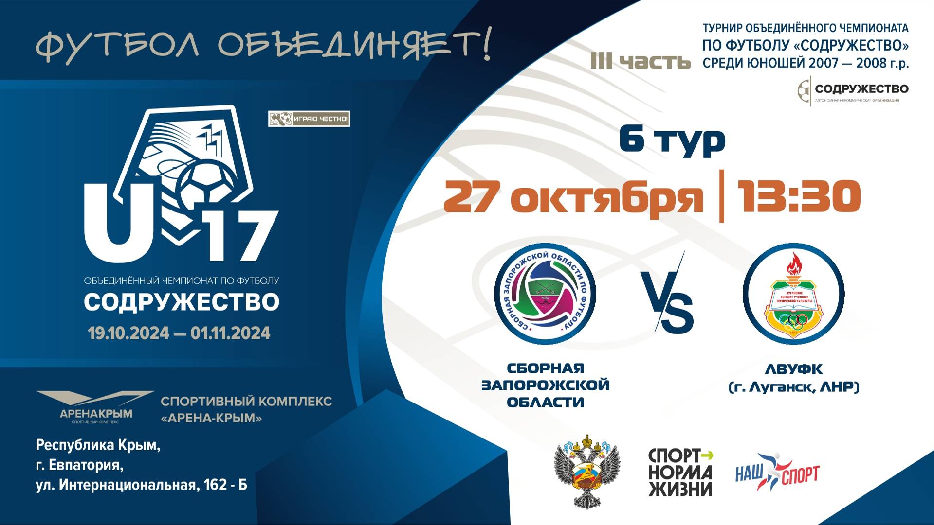 6 ТУР | U-17 | Сборная Запорожской области vs ЛВУФК (г. Луганск, ЛНР)
