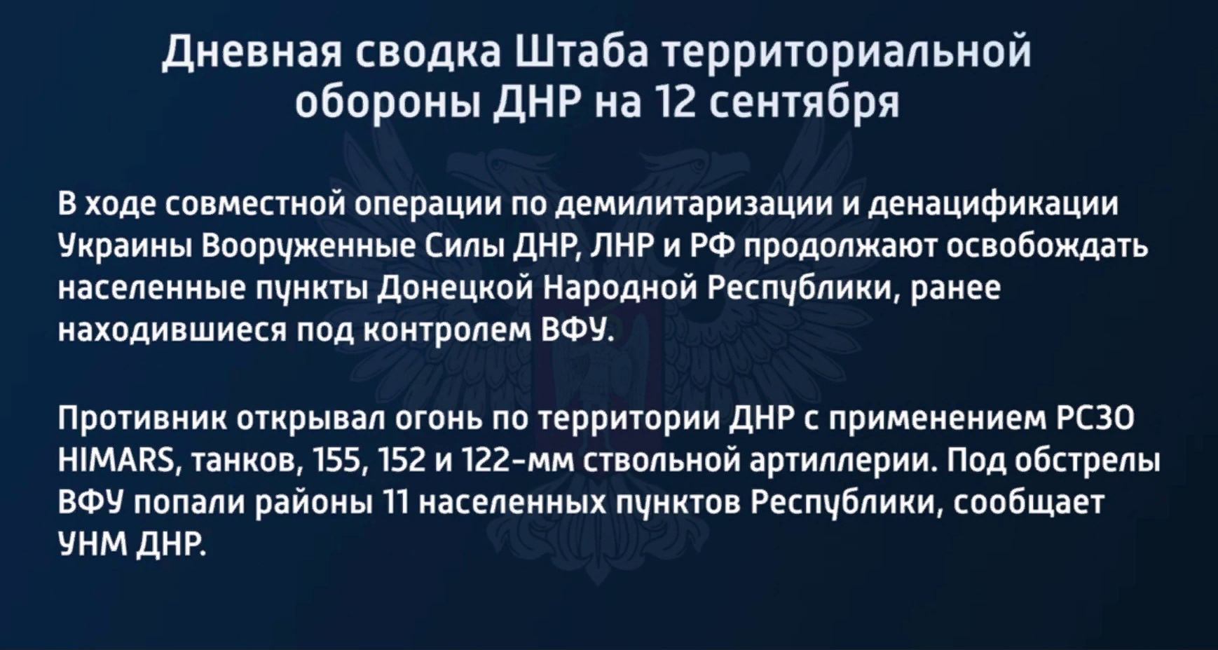 Дневная сводка Штаба территориальной обороны ДНР на 12 сентября 2022 года.mp4