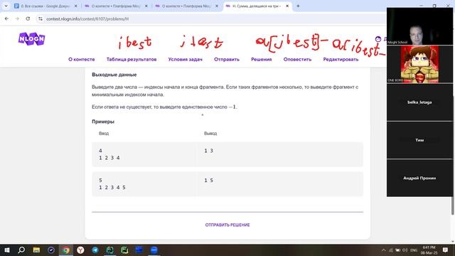 8 марта 2025 • NlogN Advanced B - Линейный поиск и префиксные суммы. Разбор задач C, D, F, H, J, K