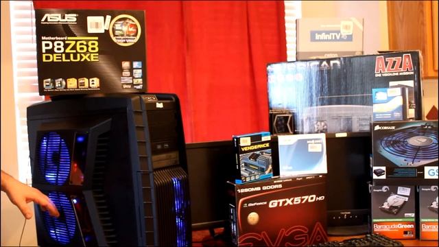 http://www.gossimopro.com PC Benchmark Stats at the bottom: Built to be a Gamer PC & a Photoshop/Video Editing PC Intel Core i7 3.4GHz Sandybridge 2600K Quad-Core Processor (4 Physical / 8 Logical) Overclocked to 4.7GHz (recently raised from 4.57GHz with the Corsair H100 Liquid CPU Cooler just added) Corsair H100 Liquid Cooled CPU System (Fax on Performance Setting) EVGA Nvidia GTX570HD (Non SC/SSC/FTW) GPU 1280MB Core Clock: 825 Shader Clock: 1650 Memory Clock: 2005 Fan on Max: Max Temp under load reads 65c ASUS P8Z68 Deluxe Motherboard, supports 32GB RAM, supports Crossfire & SLI, DIGI+VRM, OCed on-board, Bluetooth, supports SATA 3 & 6, USB 3.0, comes with a USB 3.0 Media Drive with 2 ports Corsair Vengeance 16GB RAM 1600MHz DDR3 Dual-channel, large heat-spreaders Crucial M4 SATA 3 64GB SSD 6Gb/s transfer rate (20 sec. Win 7 cold boot-up) 2x 2TB Seagate Barracuda Green 5900rpm HD @ RAID 1 1x 500GB OEM 7200RPM HDD (100GB/400GB Partitioned) Corsair Gamer Series GS800W Power Supply, 65Amps on the 12V Rail Ceton InfiniTV 4, 4 QAM Channel Tuner/HD Recorder (like a DVR for 4 HD channels at the same time) AZZA Hurrican 2000 Full Tower, 2x 120mm LED HD Fans, 2x 230mm LED Chassis, 2x 120mm LED Top Case Fans, 1x 120mm LED CPU Chassis Fan, 1x 120mm LED Motherboard Fan, 4x Easy-swap HD frames w/ 2x HD frames, bottom-placed power supply position, front top ports (2x USB, 1x USB 3.0, 1x eSATA & audio ports), 4x Media-drive bays Current Temps with the Corsair H100 CPU Liquid Cooler: Idle Temp: 26c Load Temp: 67c Benchmarks: Heaven DX 11 v2.5 Basic CPU Clock Speed: 4.7GHz CPU Max Temp: 59c EVGA GPU Core Clock: 825 EVGA GPU Shader Clock: 1650 EVGA GPU Memory Clock: 2005 EVGA GPU Max Fan Speed Temp: 65c API: DirectX 11 Shaders: High Tessellation: Extreme Anisotrophy: 16 Anti-aliasing: 8x Resolution 1140x900 FPS: 35.1 Score: 884 Min. FPS: 16.3 Max FPS: 88.9 ***Video Corrections: Azza Case Fan sizes corrected in the text body & the Crucial M4 SATA 3 SSD (SATA 2 was mentioned in the video)