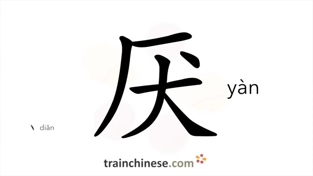 厌 (yàn) to hate; detest; satiated; be disgusted with; be bored; loathe