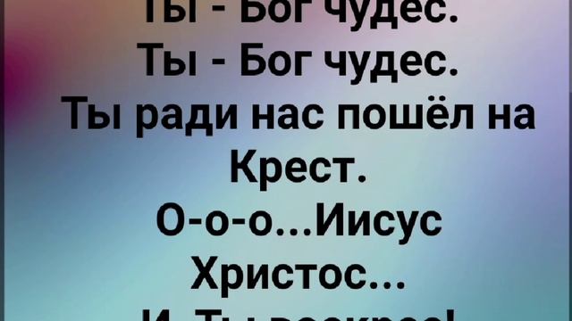 ХРИСТИАНСКИЕ ПЕСНИ ДЛЯ ХВАЛЫ И ПОКЛОНЕНИЯ ПРОСЛАВЛЕНИЯ ВООДУШЕВЛЕНИЯ ЕВАНГЕЛИЗАЦИИ ДУХОВНОГО РОСТА ПРОБУЖДЕНИЯ #господь#музыка#христианская_музыка#музика#христианскиепесни#бог#христианскиестихи#любовь#христианство#стихи#песня#песни#иисус#иисусхристос#иисусмойбог#иисус_христос#иисусбог#иисусгосподь#хвалы_и_поклонения#хваление#хвала#прославление#духсвятой#духовныйрост#духовноепробуждение#духовность#евангелие#евангелизация#евангельскаявесть#духовный_рост#пробуждение#рождество#рождествохристово#божий#божийнарод#божьеслово https://stihi.ru/avtor/zhanna70 "СПАСИТЕЛЬ МОЙ!" СЛОВА, ОБРАБОТКА: ЖАННА ВОЛКОВА-ВАРЛАМОВА МУЗЫКА: ТАТЬЯНА ЯРМАШ Слова Жанна Волкова(Варламова) https://stihi.ru/2018/04/29/9816 Спаситель мой. Спаситель мой. Свершил Ты всё. Теперь я Твой. Ты - мой Господь. Ты - Бог живой. Припев: О-о-о...Бог Ты Благий. О-о-о...Спасший мир весь от греха. О-о-о...Бог - Ты Верный. О-о-о...Мы верим в Божьи чудеса. Ты - Бог чудес. Ты - Бог чудес. Ты ради нас пошёл на крест. О-о-о...Иисус Христос... И Ты воскрес! Припев: О-о-о...Бог - Ты Благий. О-о-о...Спасший мир весь от греха. О-о-о...Бог - Ты Верный. Мы верим в Божьи чудеса. Ты - Бог чудес. Ты - Бог чудес. Ты ради нас пошёл на крест. О-о-о...Иисус Христос... И Ты воскрес! Припев: О-о-о...Бог - Ты Благий. О-о-о...Спасший мир весь от греха. О-о-о...Бог - Ты Верный. Мы верим в Божьи чудеса. Ты утешал. Ты утешал, Когда я падал и вставал. О-о-о...Благодаря Тебе вставал. Припев: О-о-о...Бог - Ты Благий. О-о-о...Спасший мир весь от греха. О-о-о...Бог - Ты Верный. Мы верим в Божьи чудеса. Ты воссиял. Ты воссиял. Свою Ты Славу мне являл. О-о-о...Меня Твой Дух Святой объял. Припев: О-о-о.....Бог - Ты Благий. О-о-о...Спасший мир весь от греха. О-о-о...Бог - Ты Верный. Мы верим в Божьи чудеса. 24.04.2018 Жанна ВОЛКОВА-ВАРЛАМОВА