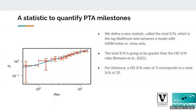 Dr. Nihan Pol (Vanderbilt University, USA): The North American Nanohertz Observatory for Gravitational waves (NANOGrav) recently reported what might be the first hints of a nanohertz stochastic gravitational wave background (GWB). Assuming that the signal found in the NANOGrav analysis is indeed the GWB, I will describe how the signal should evolve in significance over the next several years, as well as science that will be unlocked by the eventual detection of this signal. I will also describe how combining the data from individual pulsar timing arrays (PTAs) around the world into the International Pulsar Timing Array (IPTA) will allow us to extract scientific results out of the GWB significantly quicker than possible with individual PTAs. https://indico.tifr.res.in/indico/conferenceDisplay.py?confId=7982