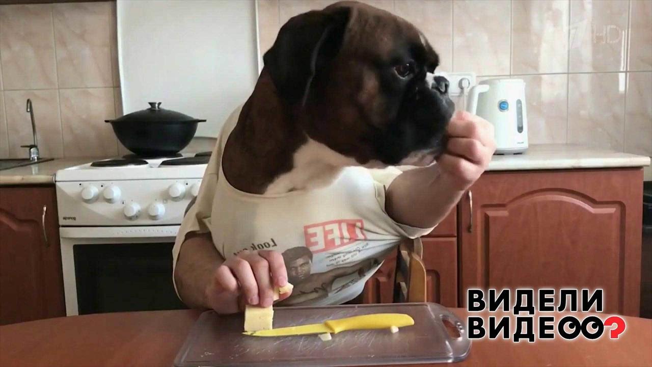 Хозяин собственноручно кормит бульдога. Видели видео? Фрагмент выпуска от 10.11.2019