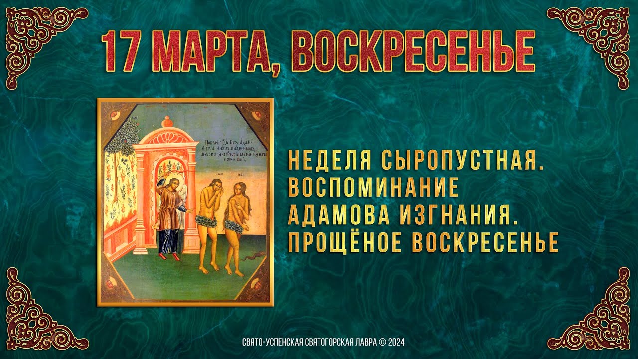 Неделя сыропустная. Воспоминание Адамова изгнания. Прощёное воскресенье. 17 марта 2024 г. Календарь