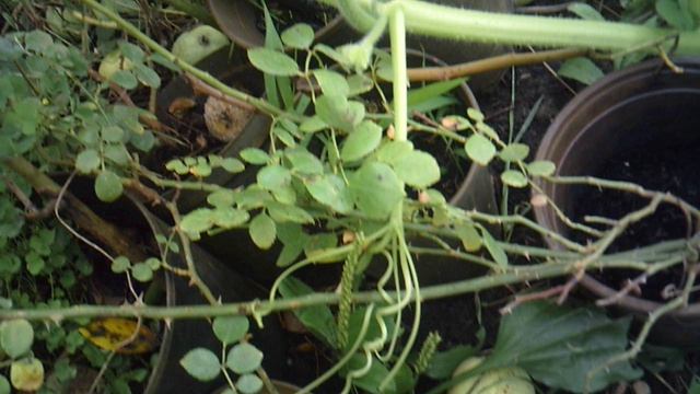 Другая ветка, куста тыквы сорта "Голиаф", тоже растёт в глубину сада