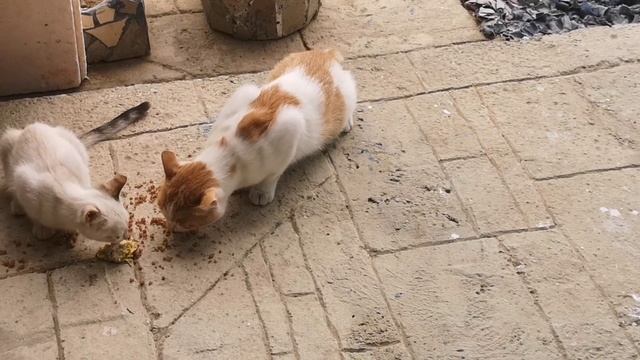 Рыжий пытается отобрать еду у Беляхи