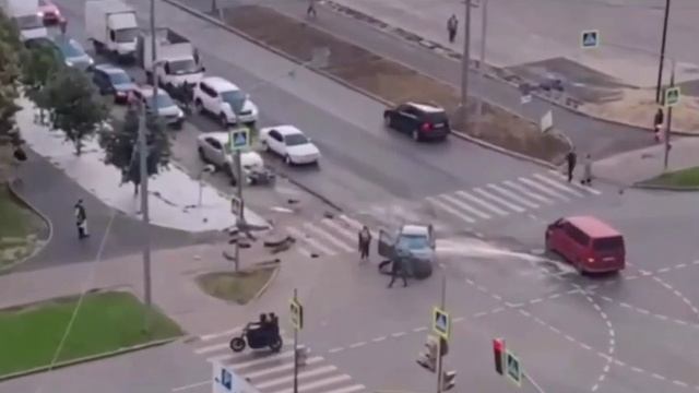 29-08-2025.В Москве мотоциклист врезался в иномарку.