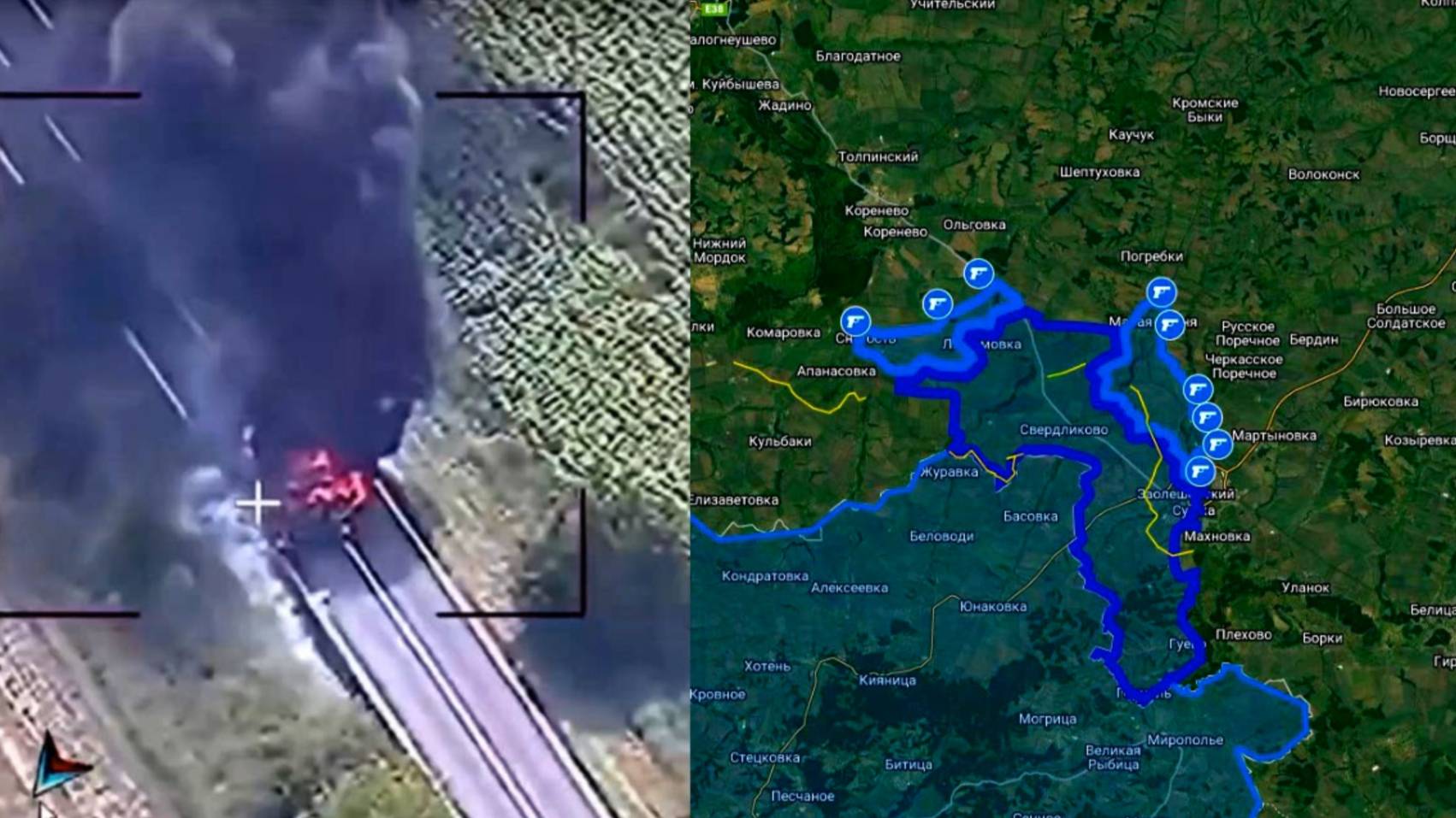 09.08.2024 Карта боевых действий в Курской области - горит натовская техника