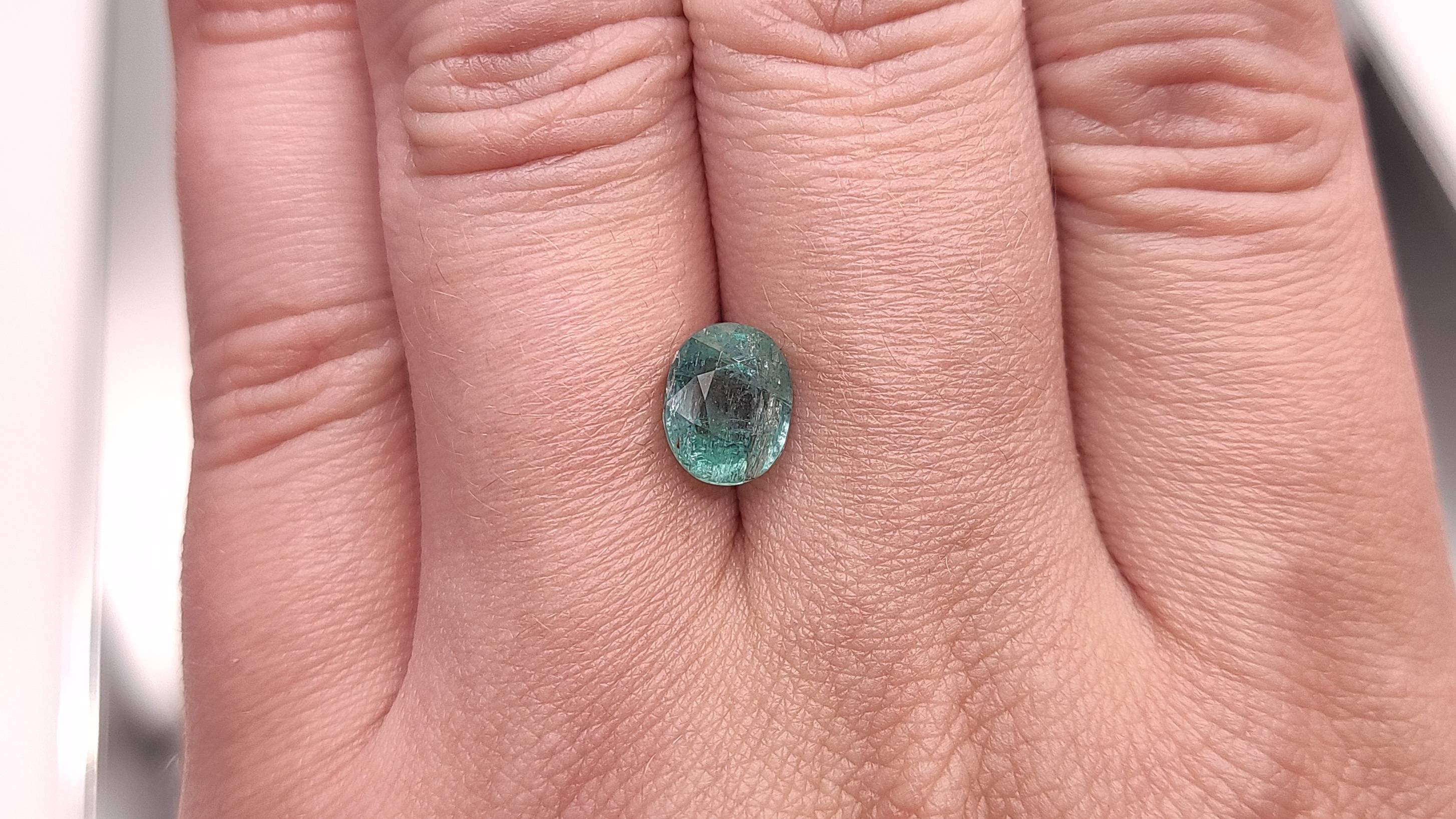 Изумруд овал 2.52 ct.. Место добычи камня - Нигерия. Природный камень, единственное облагораживание - кедровое масло. Чистота: I1(GIA):Г3 (Xtl; Ftr; Gth). Размеры: 8,83 х 7,11 х 6,42 мм. Цвет - 5. №1420