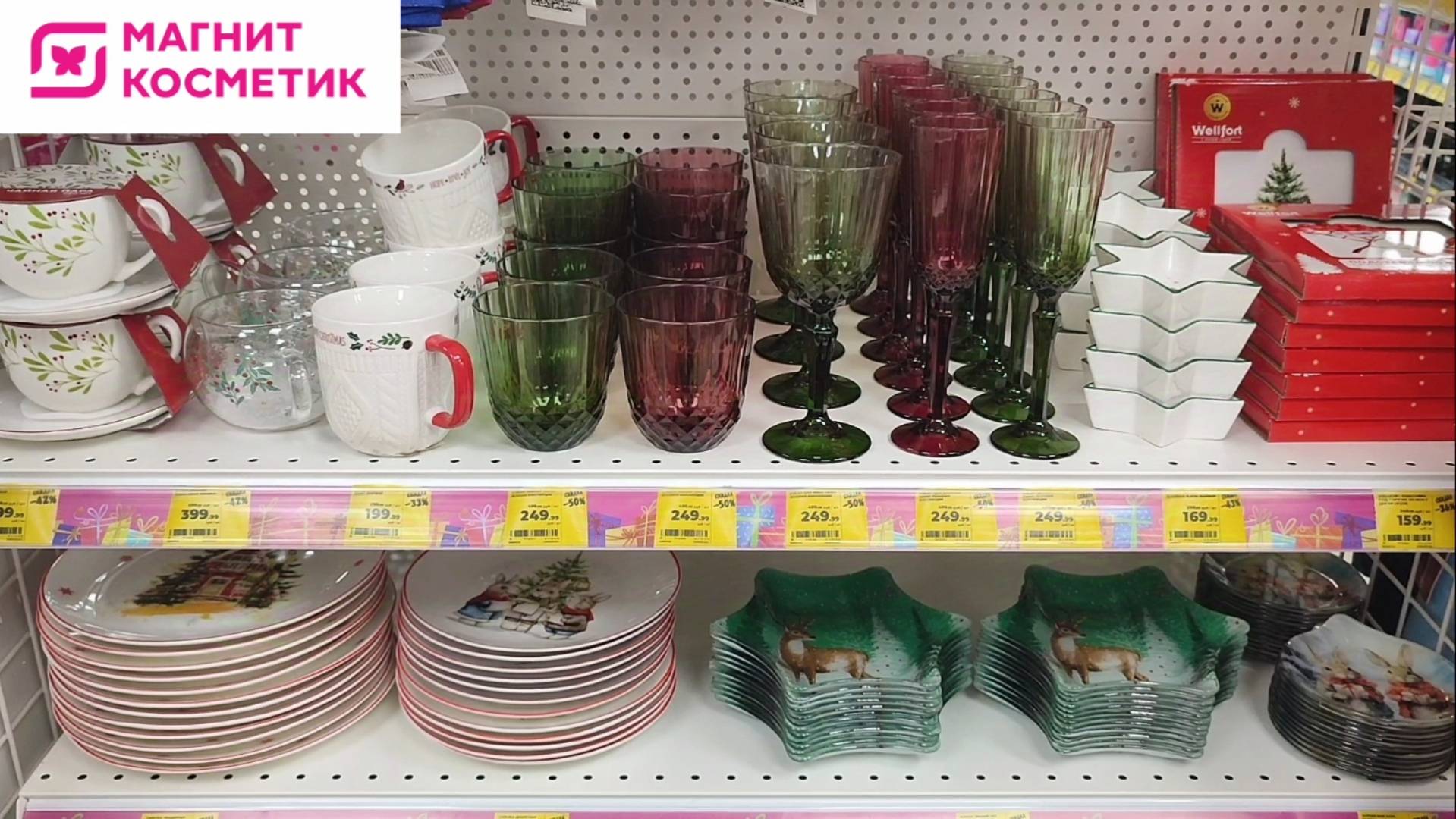Посуда, текстиль, товары для дома в Магнит Косметик в новогодней тематике ✅ 15 апреля 2025 скидка 20% на всё, даже на жёлтые ценники