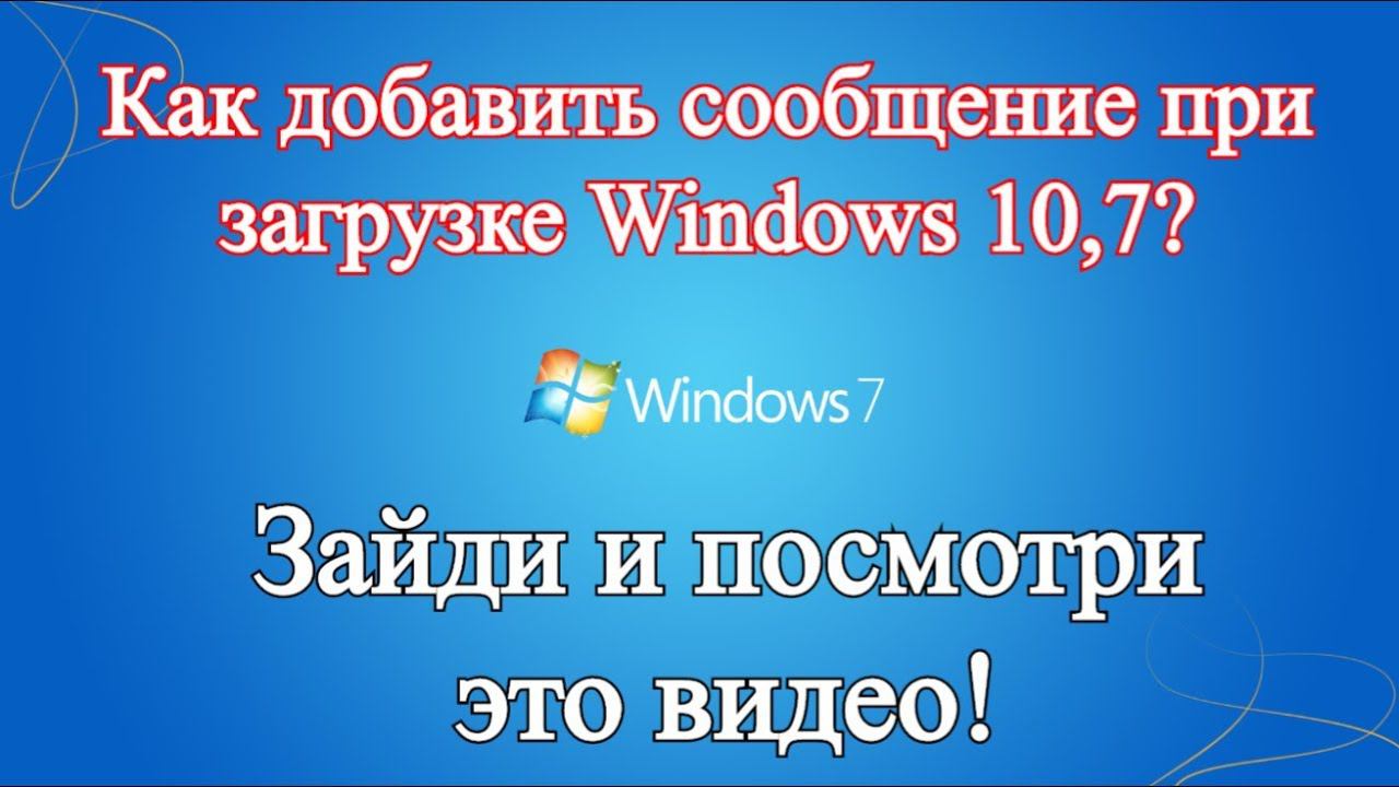 Как добавить сообщение при загрузке Windows 10,7?