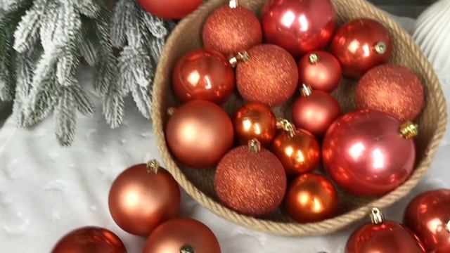 Набор пластиковых шаров ФОН ШИК (матовые, глянцевые, глиттер), цвет: кораллово-красный, 020617